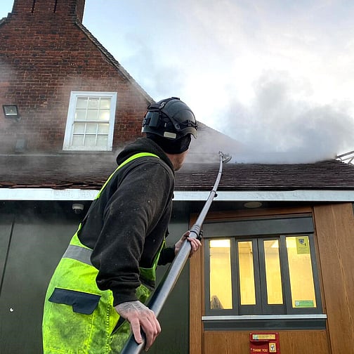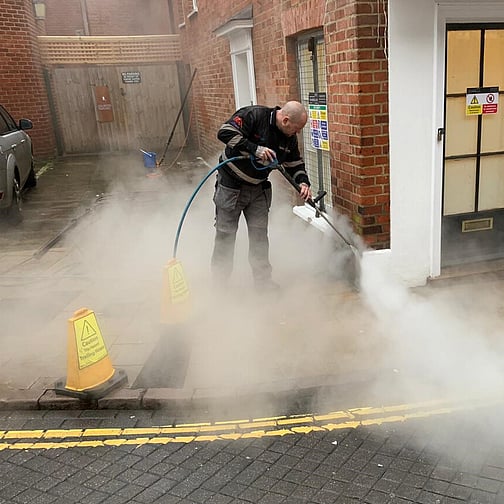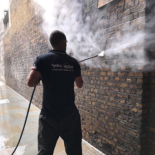 Steam pressure washing has a far lighter impact on the surface material which mitigates the risk of damage. The ‘thermo shock' effect causes the pollutant on the surface to overheat, break up and be removed - without damaging the surface. This makes it ideal for cleaning render, old stone, masonry and even softer substrates such as wood.